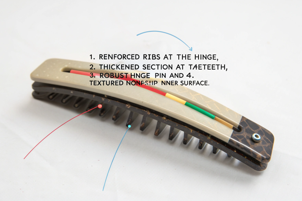 A key design feature is reinforcement at stress points. Examine the base of the clip's teeth and the area where the arms meet the hinge. These areas should be thicker or have added material (called a "gusset" or "rib") to prevent snapping. Many clips fail because they are too thin at these critical junctures. For larger claw clips, a design that uses flexibility strategically can prevent snapping. Some modern clips are engineered to be "flexible and unsnappable," bending under pressure rather than cracking. This controlled flexibility, especially in the clip's body, is a hallmark of advanced durability. Furthermore, an anti-slip finish or texture on the gripping surfaces helps the clip hold hair securely without the user needing to overtighten it, which puts excessive strain on the mechanism.