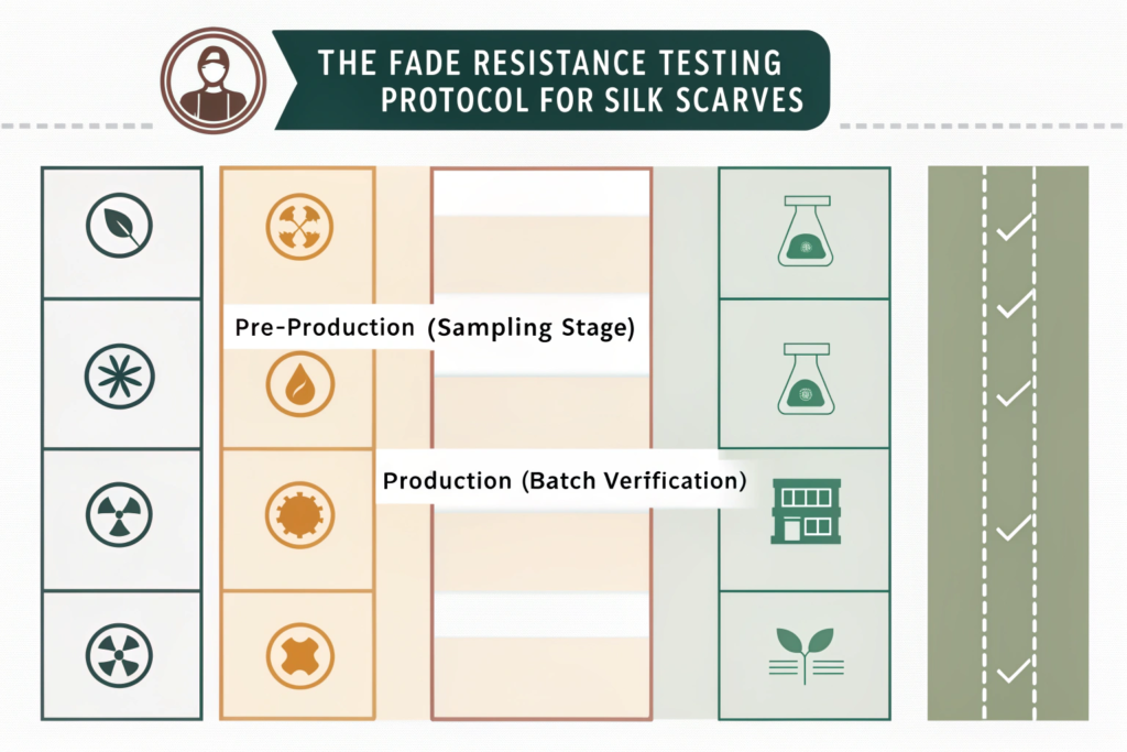 For a luxury product like printed silk hair scarves, color vibrancy is everything. A fading print doesn't just look worn; it signals poor quality, damaging your brand's reputation for excellence. As a wholesaler or brand, you cannot rely on supplier promises alone. Implementing a systematic, verifiable testing protocol for fade resistance is non-negotiable to protect your investment and ensure customer satisfaction.