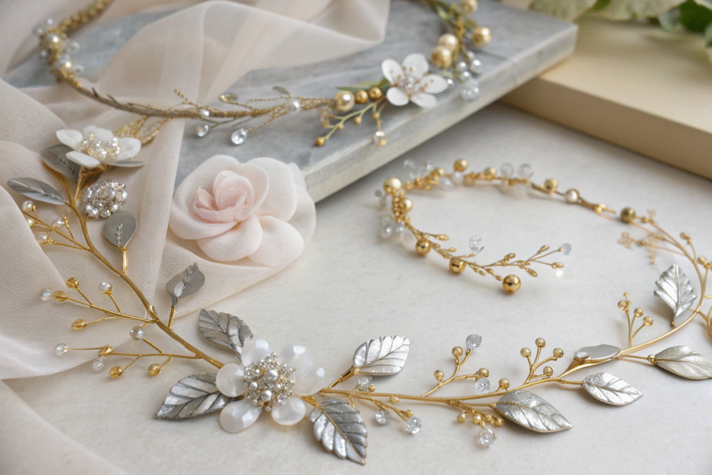 Real-touch silk flowers and botanical-inspired pieces represent another strong category. Modern manufacturing techniques create artificial flowers that look remarkably real while being durable enough to withstand wedding day demands. These pieces often incorporate pearls, crystals, or metallic elements for added elegance. The Wedding Report indicates that botanical-themed weddings have increased by 45% in the past two years, driving demand for nature-inspired accessories. These pieces work particularly well for outdoor, garden, and rustic-themed weddings, offering photographers beautiful, textural elements that enhance wedding imagery.