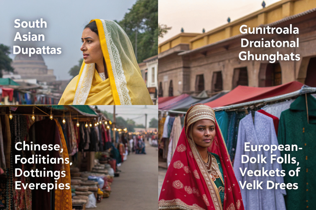 Various cultural traditions including South Asian dupattas and ghunghats, Chinese traditional headdresses, African cultural coverings, and European folk costumes maintain vibrant markets for ceremonial veils with deep cultural significance.These markets require understanding of specific cultural contexts and traditional design elements.