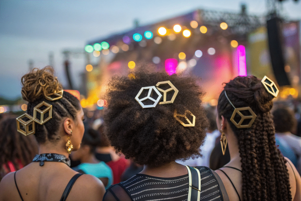 Metal hair clips continue to evolve as essential festival accessories, with current trends favoring oversized geometric claw clips, celestial-themed barrettes, and innovative mixed-material statement pieces. These styles successfully combine practical hair management with strong fashion statements that withstand active festival conditions while photographing beautifully throughout day-to-night transitions.