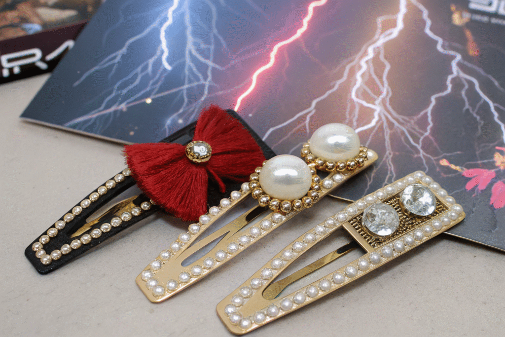 The most popular metal hair clips for festival hairstyles include oversized geometric claw clips, celestial-themed barrettes, mixed-material statement pieces, and layered multiple clip arrangements. These styles prioritize bold visual impact, secure hold during movement, and compatibility with textured, voluminous hairstyles that define festival fashion. The current trend favors pieces that catch light dramatically and create eye-catching details in both daylight and evening festival settings.